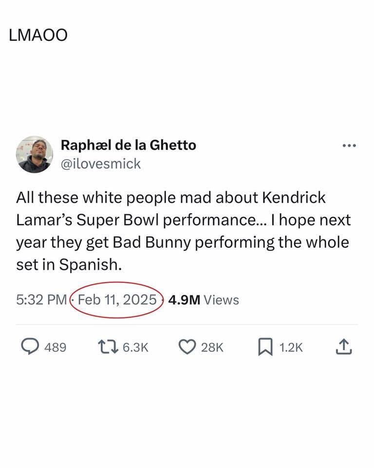 When the announcement that Bad Bunny would be playing the Super Bowl was made, country music fans said Morgan Wallen would have been better, and rock fans were upset that Metallica was not going to get a Santa Clara homecoming. There were also repeated calls for Weird “Al” Yankovic to play the show. But that’s not what the Super Bowl Halftime Show has become. It is not for those who watch the Bills, Lions, Eagles, Ravens, Travis Kelce’s team, or Travis Kelce’s fiancée. Those people are already watching and likely to watch the second half. It is for those who would pass up the game altogether on a Sunday in early February.